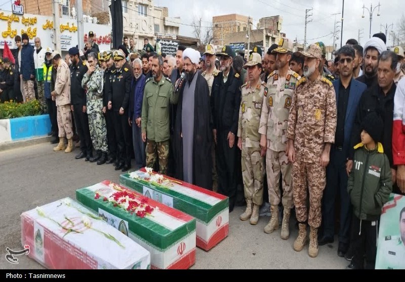 پیکرهای مطهر سه شهید، سرتیپ دوم علی شیخی کوهسار و سرتیپ دوم حمزه جهانتیغ از ستاد مرزبانی تهران به همراه ناو استوار یکم شهید علی بارانی از نیروی دریایی ارتش جمهوری اسلامی که در بندر جاسک به شهادت رسیدند، امروز در گرگان و گالیکش تشییع شد.