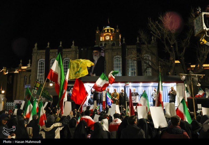 در شبی که آسمان تبریز با بارش باران همراه بود، میدان ساعت این شهر به صحنه نمایش غیرت و اتحاد مردم تبدیل شد.