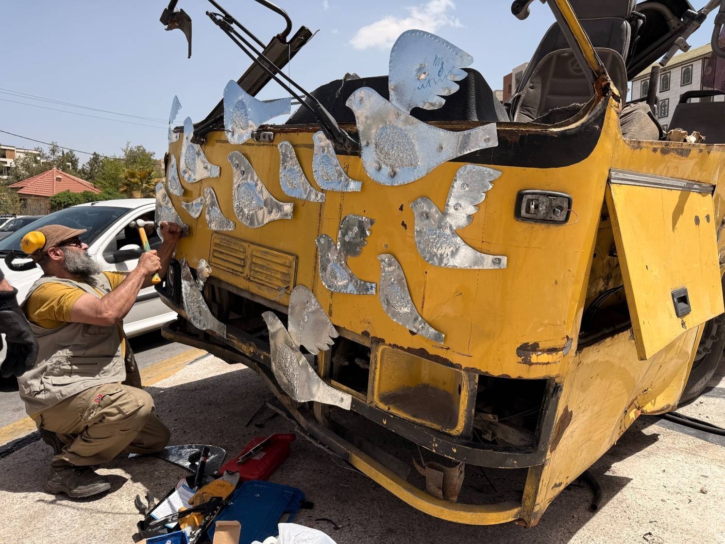 عادل یزدی با بازآفرینی اتوبوس آسیبدیده و نصب 200 پرنده قلمزنیشده، اثری نمادین از جاودانگی ارائه کرده است.